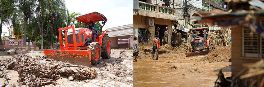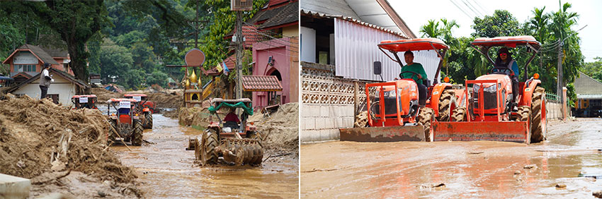 นายพิษณุ มิลินทานุช ผู้ช่วยกรรมการผู้จัดการใหญ่ ผู้จัดการทั่วไป สายงานขาย การตลาดและบริการ บริษัทสยามคูโบต้าคอร์ปอเรชั่น จํากัด กล่าวว่า “ถึงแม้สถานการณ์น้ำท่วมในจังหวัดเชียงรายจะเริ่มคลี่คลายแล้วแต่วิกฤตจากดินโคลนที่ถูกพัดพามายังคงเป็นปัญหาหลักที่ทำให้ผู้ประสบภัยไม่สามารถกลับเข้าพื้นที่ได้ บริษัทฯ จึงเร่งระดมทีม “คูโบต้า พลังใจสู้ภัยน้ำท่วม” จัดกิจกรรม “รวมพลังคนคูโบต้า ช่วยภัยน้ำท่วม" โดยได้รับความอนุเคราะห์จากร้านค้าผู้แทนจำหน่าย คูโบต้าจุงชัย จิตอาสาลูกค้าคูโบต้า 20 คน นำแทรกเตอร์และรถขุด รวมกว่า 25 คัน เข้าร่วมปฏิบัติภารกิจช่วยเหลือผู้ประสบภัยน้ำท่วม ลงพื้นที่ Big Cleaning นำแทรกเตอร์และรถขุดเข้าเคลียร์เส้นทางดินโคลนหลังน้ำลดในพื้นที่เขตเศรษฐกิจในตัวเมืองเชียงราย และชุมชนโดยรอบวัดถ้ำผาจม อำเภอแม่สาย กว่า 200 หลังคาเรือนที่ได้รับความเสียหาย พร้อมกันนี้ยังได้มอบถุงยังชีพ อาทิ อาหาร น้ำดื่ม ยารักษาโรค ตลอดจนของใช้จำเป็นให้แก่ผู้ประสบภัยในชุมชนบ้านไม้ลุงขน ถนนป่าไม้แดง อำเภอแม่สาย