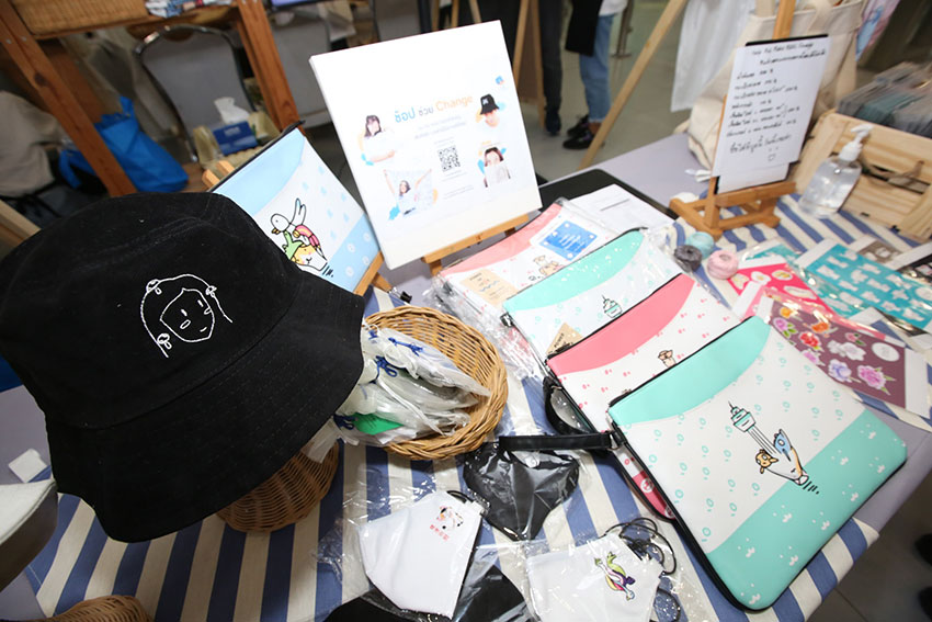 ภายในงานมีการแบ่งโซนที่น่าสนใจและหลากหลาย ไม่ว่าจะเป็น โซน “ช้อป” ที่มาพร้อมผลิตภัณฑ์จากเด็ก ๆ และชุมชนที่ออกบูทภายในงาน มีผลงานศิลปะของเด็กๆ กว่า 60 ผลงาน จากคลาสอาร์ต ที่เด็กๆ ได้สร้างสรรค์จินตนาการผ่านลายเส้นออกมาเป็นผลงานที่น่าประทับใจ ทุกท่านสามารถมาเลือกช้อปผลงานจากนิทรรศการภาพวาด เพื่อสร้างกำลังใจในการสร้างสรรค์ผลงานต่อไป มีผลิตภัณฑ์จากเด็กๆ ไฟ-ฟ้า (จากโครงการ Help Kids Make REAL Change) ไม่ว่าจะเป็นผ้าพันคออุ่นรัก กระเป๋าสุขใจ กระเป๋าใส่ใจ หน้ากากปกป้อง และเสื้อยืดมิตรภาพ ฯลฯ โดยผลิตภัณฑ์เหล่านี้เกิดขึ้นจากความตั้งใจที่จะจุดประกายให้เยาวชนได้รู้จักส่งต่อการ ‘ให้’ ไปยังผู้อื่น โดยนำไอเดีย ความคิดสร้างสรรค์ที่ได้เรียนรู้จากคลาสวิชาวาดเส้นและคอมพิวเตอร์กราฟิก มาออกแบบผ่านลายเส้น ลวดลายสีสันรูปร่างต่างๆ พัฒนาจนต่อยอดกลายเป็นสินค้าคุณภาพจากใจ ซึ่งในปีนี้ได้มีความพิเศษเพิ่มขึ้น