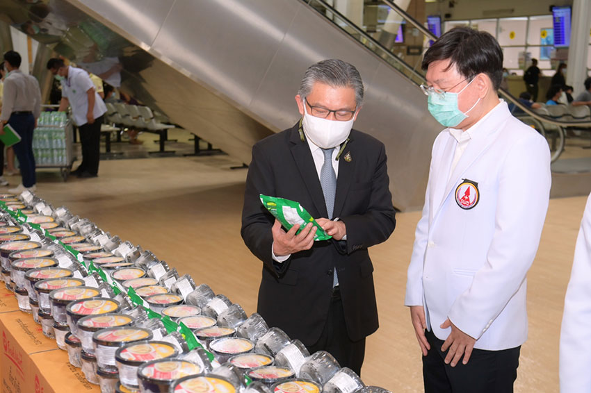 ด้าน คุณสิริพงศ์ กล่าวว่า ในฐานะที่เป็นตัวแทนของบริษัทฯ ขอขอบพระคุณเป็นอย่างสูงแก่บุคลากรทางการแพทย์ทุกท่าน รวมถึงของ รพ.ธรรมศาสตร์เฉลิมพระเกียรติที่เสียสละพลังกาย ความรู้ ทุ่มเททุกสรรพกำลัง ช่วยกันปกป้องคนไทยรอดปลอดภัยจากโควิด ขณะเดียวกันยังต้องทำงานท่ามกลางความเสี่ยงสูงต่อสุขภาพ ในวันนี้ CPF ขอส่งมอบอาหารปลอดภัย โดยผนึกพลังกับบริษัทในเครืออย่าง CPI นำเครื่องดื่มบำรุงสุขภาพและขนม มาช่วยเป็นกำลังเสริมให้ทีมหมอพยาบาลที่ทำงานในโรงพยาบาลสนาม ซึ่งสอดคล้องตามนโยบายของ ท่านประธานอาวุโสธนินท์ เจียรวนนท์ ที่ต้องการระดมทุกสรรพกำลังของเครือมาช่วยเหลือภาครัฐรับมือด้านสาธารณสุขได้อย่างมีประสิทธิภาพ เพื่อให้ประเทศไทยเอาชนะการระบาดโควิดระลอกใหม่ได้