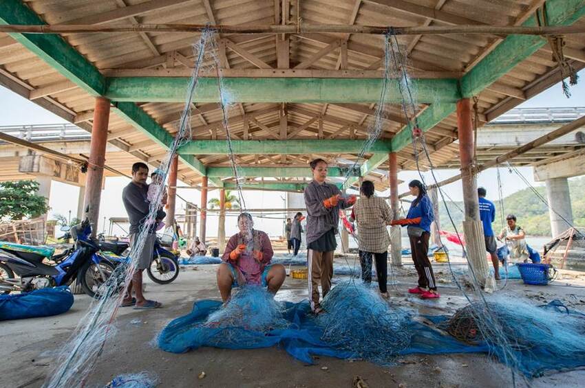 “เมื่อเรือขึ้นแล้ว ทีมงานจะนำของทะเลที่ได้มาแยกชนิด อย่างปลาหมึกก็จะมีการคัดไซส์ แบ่งเป็นเล็ก กลาง ใหญ่ จากนั้นนำไปทำความสะอาด และทำตามกระบวนการต่อไป อย่างหมึกกระตอยก็จะนำไปตากแห้ง เช่นเดียวกับหมึกศอกขนาดใหญ่ที่นำไปจำหน่ายไหว้เจ้าตามธรรมเนียมของคนจีน บางส่วนก็จะนำไปแช่แข็งทันที เพื่อให้ลูกค้าได้รับประทานแต่ของสดและอร่อยเท่านั้น” เขากล่าว