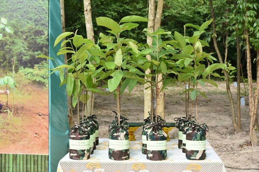ตกสามหลั่น จำนวน 50 ไร่ โดยมีเป้าหมายปลูกต้นไม้ทั้งหมด 10,000 กล้า ประกอบด้วย ต้นพะยูง สมอพิเภก แคนา ประดู่ป่า พะยอม กาญจนิการ์ และขี้เหล็ก เป็นต้น ซึ่งจะทะยอยปลูกต้นไม้อย่างต่