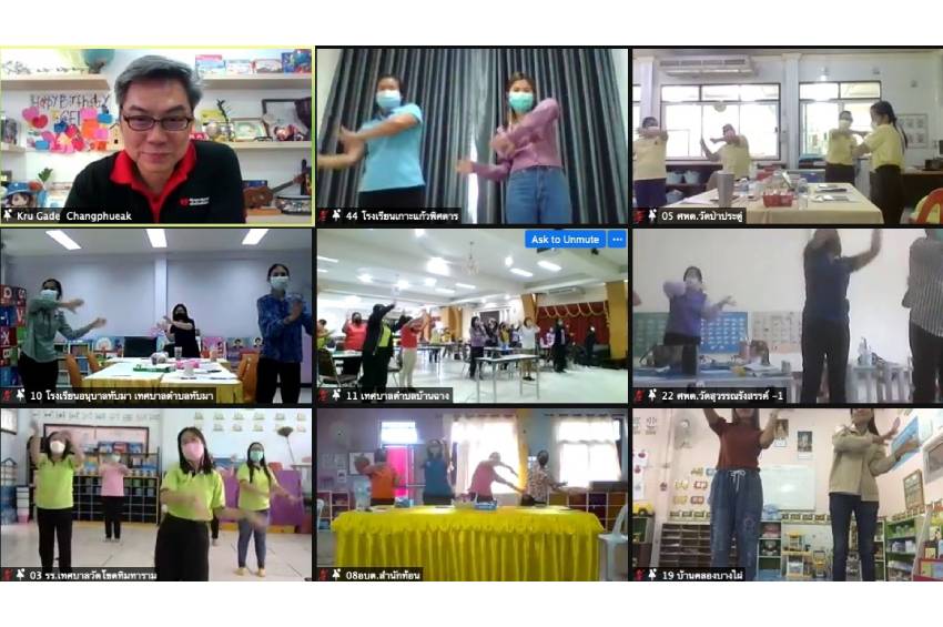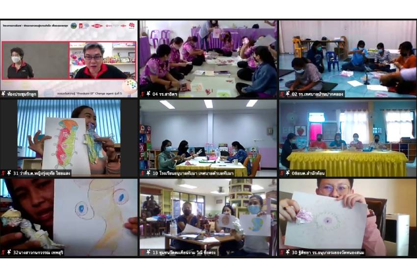 จัดการอบรมออนไลน์เติมความรู้ “ทักษะสมอง EF” Change Agent รุ่นที่ 5 ภายใต้โครงการ “ดาว – อีเอฟ พัฒนาเยาวชนสู่ความสำเร็จ เพื่อระยองผาสุก” ด้วยการอบรมแบบ Live Blended Participatory (LB-PL) ผ่านระบบ Zoom ให้กับครูปฐมวัยศูนย์พัฒนาเด็กเล็กและบุคลากรด้านการศึกษาในสังกัดสำนักงานเขตพื้นที่การศึกษาประถมศึกษาระยอง เขต 1 และเขต 2 จำนวน 200 คน โดยมีวัตถุประสงค์เพื่อขยายเครือข่ายในการนำองค์ความรู้ทักษะสมองเพื่อความสำเร็จหรืออีเอฟ (Executive Functions) มาเป็นรากฐานในการเลี้ยงดูและพัฒนาเด็กและเยาวชนรุ่นใหม่ในจังหวัดระยองให้เป็นพลเมืองคุณภาพ ลดปัญหาสังคม รวมถึงแนะนำการจัดการเรียนรู้ด้วยเทคนิคการจัด Home-based Learning เพื่อให้คุณครูมีการวางแผนและเตรียมการจัดการเรียนรู้ให้มีกิจกรรมที่ให้เด็กได้เคลื่อนไหวร่างกายและเกิดทักษะอีเอฟในขณะเดียวกัน ซึ่งจะเป็นกลไกเสริมสร้างความเข้มแข็งและร่วมกันขับเคลื่อนโครงการได้อย่างมีประสิทธิภาพต่อไป ปัจจุบันโครงการมีแกนนำวัคซีนชีวิต (Change Agent) ทั้งสิ้นแล้วกว่า 1,300 คน มีศูนย์พัฒนาเด็กเล็ก สถานรับเลี้ยงเด็ก อนุบาลเอกชน และโรงเรียนระดับประถมศึกษาจำนวนกว่า 200 แห่ง เข้าร่วมโครงการฯ