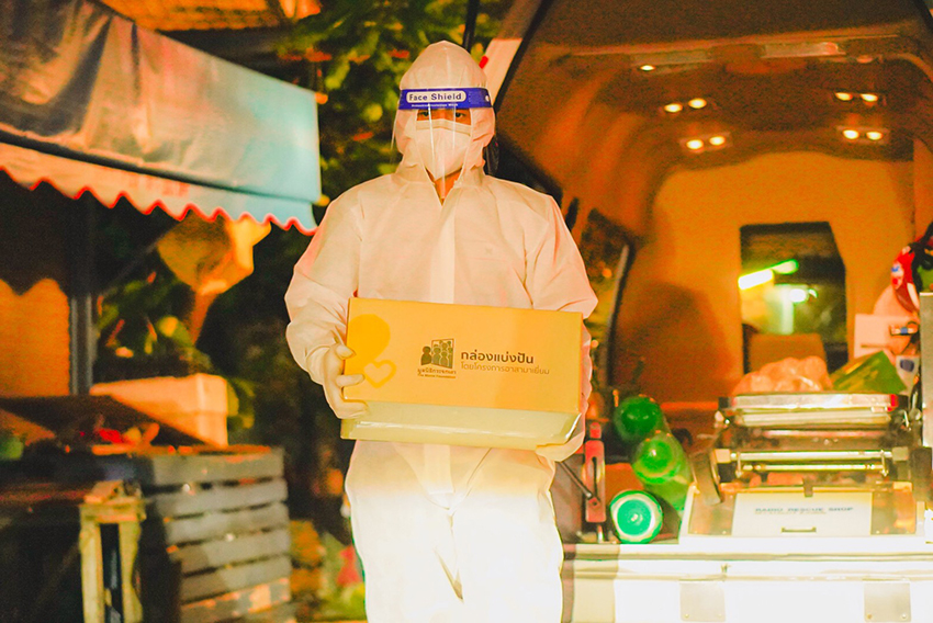 จากการที่ได้รับการติดต่อขอความเหลือเข้ามาจากทั่วทุกสารทิศ ทั้งทางโทรศัพท์ เพจเฟซบุ๊ก และการเดินเข้ามาติดต่อที่มูลนิธิโดยตรงนั้น “กล่องแบ่งปัน” จึงถูกจัดทำขึ้นเป็นกล่องที่รวบรวมน้ำใจจากพี่น้องชาวไทยทั่วประเทศในรูปแบบสิ่งของ อาหาร และเงินบริจาค เพื่อส่งต่อความช่วยเหลือให้กับผู้ได้รับความเดือดร้อนจากโควิด-19 ในทุกพื้นที่อย่างเร่งด่วน นอกจากนั้น หัวหน้าฝ่ายสื่อสารองค์กรและระดมทุนจากมูลนิธิกระจกเงาคนนี้ยังเล่าให้ฟังอีกว่า “ถึงแม้การทำงานหลายอย่างจะลำบากมากขึ้นในช่วงโควิด-19 แต่เราก็ไม่เคยหยุด เพราะเราได้เห็นความเดือดร้อนอย่างหนักที่เกิดขึ้นกับคนทั่วประเทศ สิ่งที่สำคัญคือเราต้องปรับเปลี่ยนการทำงานและให้อาสาสมัครทุกคนให้ความสำคัญสูงสุดกับการขอความช่วยเหลือที่เกี่ยวข้องกับโควิด-19 ดังนั้นเราจึงทำงานตลอดเวลา เพื่อส่งต่อความช่วยเหลือให้ทันท่วงที”