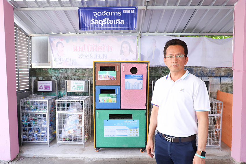 “ในศูนย์จัดการวัสดุจะบริหารงานด้วยนวัตกรรมระบบการจัดเก็บข้อมูลวัสดุรีไซเคิล เมื่อสมาชิกได้นำวัสดุเหลือใช้มาคัดแยกในศูนย์ฯ ระบบจะบันทึกข้อมูลทั้งหมด แล้วประสานงานกับบริษัทรีไซเคิลต่างๆ เพื่อมารับซื้อไป โดยที่ระบบจะดำเนินการคำนวณวัสดุที่มาฝากเป็นมูลค่าเงิน เพื่อปันผลคืนให้กับสมาชิกเป็นเงินสดกลับไปใช้ในชีวิตประจำวัน ส่วนวัสดุที่ไม่สามารถจำหน่ายได้ เช่น กล่องยูเอชที ถุงพลาสติก ก็จะมีบริษัทนำไปแปรรูปเป็นผลิตภัณฑ์ เพื่อนำมาใช้งานในชุมชนอีกที หรือส่วนที่รีไซเคิลไม่ได้ เช่น เศษอาหาร ใบไม้ จะถูกนำไปหมักเป็นปุ๋ยมาใช้ประโยชน์เช่นกัน