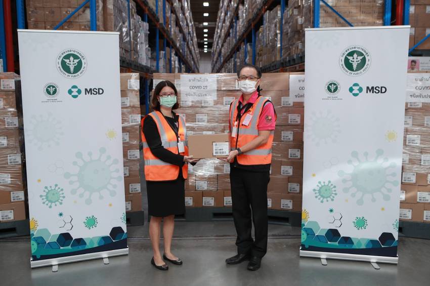 ส่งมอบยาต้านไวรัสชนิดรับประทาน จำนวน 2 ล้านแคปซูล หรือ 50,000 คอร์สการรักษา ให้กับ กรมการแพทย์ กระทรวงสาธารณสุข โดยมี นายแพทย์สมศักดิ์ อรรฆศิลป์ อธิบดีกรมการแพทย์ ให้เกียรติเป็นประธานในพิธีรับมอบ โดยในเบื้องต้นจะใช้รักษาผู้ป่วยโควิด-19 ที่เป็นผู้ใหญ่ที่มีอาการของโรคในระดับน้อยหรือปานกลาง โดยเฉพาะอย่างยิ่งกลุ่มผู้ป่วยที่มีปัจจัยเสี่ยงอย่างน้อย 1 ปัจจัยอันจะส่งผลให้การดำเนินโรครุนแรงขึ้น เช่น ผู้สูงอายุและผู้ป่วยในกลุ่มโรคเรื้อรัง