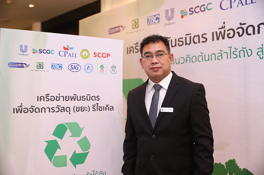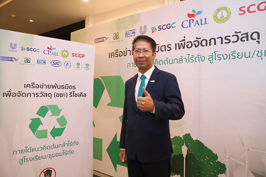 นายนิวัฒน์ อธิวัฒนานนท์ ประธานคณะกรรมการ Innovation & Circular Economy บริษัท เอสซีจี เคมิคอลส์ จำกัด (มหาชน) หรือ SCGC กล่าวว่า SCGC ให้ความสำคัญกับเรื่อง Circular Economy มาอย่างต่อเนื่อง โดยร่วมมือกับทุกภาคส่วนเพื่อนำหลักเศรษฐกิจหมุนเวียนมาประยุกต์ใช้ใน eco system ต่าง ๆ ซึ่งจะช่วยให้การใช้ทรัพยากรเกิดประโยชน์สูงสุด ลดปัญหาขยะและช่วยลดภาวะโลกร้อน สำหรับภาคีเครือข่ายต้นกล้าไร้ถัง ถือเป็นการสร้างระบบนิเวศการจัดการขยะที่สอดคล้องกับหลักเศรษฐกิจหมุนเวียน (Circular Economy) โดย SCGC จะเข้ามาช่วยดำเนินการใน 2 ส่วน ได้แก่ 1.เว็บแอปพลิเคชัน “คุ้มค่า” (KoomKah) เพื่อให้ทุกโรงเรียนสามารถเห็นผลลัพธ์การจัดการของตัวเอง พร้อมทั้งสะสมคะแนน แปลงขยะกลับมาเป็นเงินหรือผลิตภัณฑ์รีไซเคิลผ่านการแลกคะแนนได้ กระตุ้นให้โรงเรียนมีส่วนร่วมจัดการขยะผ่านประโยชน์ที่ได้รับ 2.โครงการถุงนมกู้โลก ที่ผ่านมาถุงนมโรงเรียน เป็นขยะที่ไม่มีผู้รับซื้อจึงถูกกำจัดด้วยการฝังกลบ ทาง SCGC ได้ให้ความรู้เรื่องการจัดการขยะแก่เยาวชน พร้อมร่วมแก้ปัญหาการจัดการขยะกับทางโรงเรียนนำร่องที่ จ.ระยอง โดยใช้ความเชี่ยวชาญด้านวัสดุและกระบวนการรีไซเคิล เปลี่ยนถุงนมให้เป็นเม็ดพลาสติกที่มีคุณภาพ นำไปใช้ผลิตเป็นของใช้ต่าง ๆ ได้อีกครั้ง เช่น เก้าอี้พลาสติกรีไซเคิล กระถางต้นไม้ ให้โรงเรียนได้นำไปใช้ประโยชน์และเยาวชนได้เห็นตัวอย่างที่เป็นรูปธรรม พร้อมขยายผลกับเครือข่ายความร่วมมือด้านเศรษฐกิจหมุนเวียนต่อไป