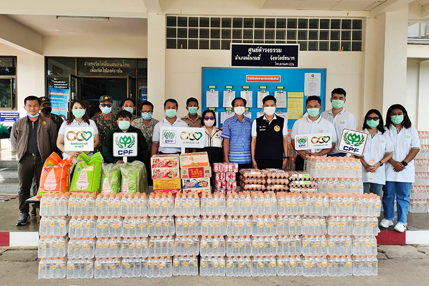 ขณะที่ จังหวัดชัยนาท นายศักรินทร์ ศรีสมวงศ์ นายอำเภอมโนรมย์ มอบหมายให้ นายจรัญ เรืองรุ่ง ปลัดอาวุโสอำเภอมโนรมย์ รับมอบเครื่องอุปโภคบริโภคจาก ซีพีเอฟ ประกอบด้วย น้ำดื่มซีพี 6,000 ขวด ข้าวสาร 105 กิโลกรัม ไข่ไก่สด อาหารสำเร็จรูป และบะหมี่กึ่งสำเร็จรูป โดยมี นายสุรชัย ศรีพารา ผู้จัดการโครงการส่งเสริมสุกรขุนชัยนาท และ นายศตวรรษ ต๊ะปวก ผู้จัดการโครงการส่งเสริมสุกรขุนสิงห์บุรี พร้อมชาวซีพีเอฟจิตอาสา ร่วมมอบ ทั้งนี้ นายอำเภอมโนรมย์ ขอบคุณซีพีเอฟที่ห่วงใยพี่น้องคนไทยเร่งให้ความช่วยเหลือในเหตุการณ์น้ำท่วมมาอย่างต่อเนื่องโดยเฉพาะด้านอาหารการกินให้ทุกคนได้มีอาหารเพียงพอในการดำรงชีวิต พร้อมทั้งส่งกำลังใจเพื่อให้ผ่านสถานการณ์นี้ไปด้วยกัน