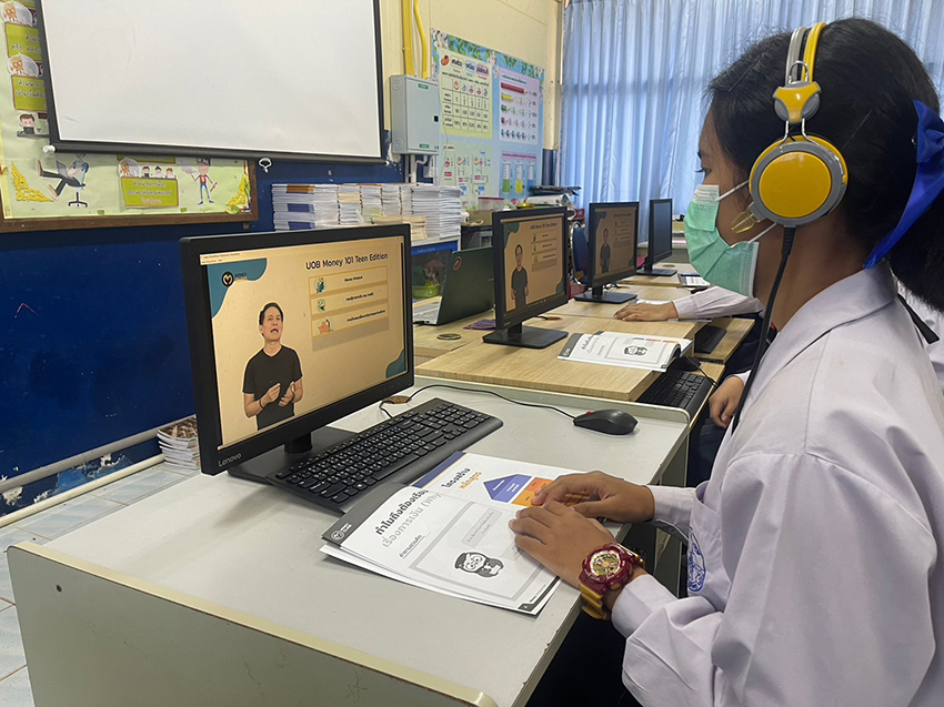 ธนาคารยูโอบี ประเทศไทย มุ่งเป็นส่วนหนึ่งที่ช่วยเสริมสร้างอนาคตเยาวชนไทยให้เติบโตอย่างแข็งแรงและยั่งยืน ด้วยสุขภาพการเงินที่ดี ได้ดำเนินหลักสูตรการเงินออนไลน์ UOB Money 101 Teen Edition วัยรุ่นเก่งการเงิน ร่วมกับโครงการร้อยพลังการศึกษา มุ่งสร้างทักษะความรู้และภูมิคุ้มกันด้านการเงินให้กับนักเรียนชั้นมัธยมศึกษาตอนต้นทั่วประเทศ เพื่อยกระดับคุณภาพชีวิตเด็กไทยให้มีความรู้เรื่องการเงิน สามารถวางแผนอนาคตได้อย่างมีประสิทธิภาพ ซึ่งในรุ่นแรกปีการศึกษา 2564 นักเรียนกว่า 884 คนใน 18 โรงเรียนทั่วประเทศได้เข้าเรียนและได้รับความรู้เรื่องการเงิน โดยหลักสูตรการเงินออนไลน์นี้เป็นส่วนหนึ่งของโครงการ UOB My Digital Space ซึ่งมีแผนดำเนินโครงการในระยะยาวเพื่อลดช่องว่างทางการศึกษาของเด็กที่ด้อยโอกาสทั่วทั้งภูมิภาคให้เข้าถึงโอกาสในการเรียนรู้ผ่านช่องทางดิจิทัล และเชื่อมโยงพวกเขาสู่โลกแห่งโอกาสการเรียนรู้ดิจิทัล