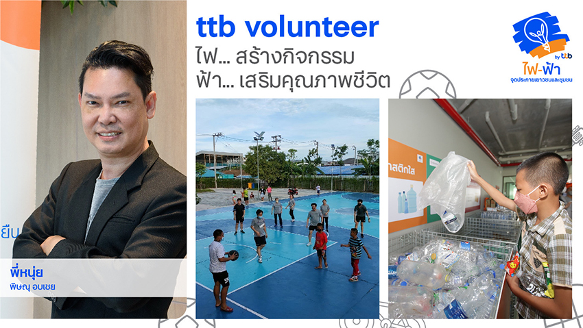 นายพิษณุ อบเชย หรือพี่หนุ่ย อาสาสมัครทีทีบี โครงการ “ไฟ..สร้างกิจกรรม ฟ้า..เสริมคุณภาพชีวิต” หนึ่งในโครงการตัวอย่าง ที่เกิดขึ้นจากการมองเห็นปัญหาด้านสุขลักษณะของชุมชนคริสตจักร ย่านรามอินทรา จึงเกิดไอเดียการปรับเปลี่ยนทัศนียภาพให้เป็นชุมชนที่น่าอยู่มากยิ่งขึ้น โดยดูแลเรื่องจุดการทิ้งขยะ การแยกขยะ พร้อมประสานงานกับเทศบาลเรื่องการเก็บขยะ เพื่อลดปัญหากองขยะ อีกทั้งต่อยอดเรื่องสุขภาพของเด็ก ๆ ในชุมชนโดยเข้าไปจุดประกายหาพื้นที่ทำกิจกรรมการออกกำลังกายให้เด็ก ๆ ได้ใช้เวลาว่างให้เป็นประโยชน์ พร้อมทั้งมีสุขภาพที่แข็งแรง