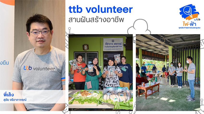 นายสุชัย จรีอาภาภรณ์ หรือพี่เส็ง อาสาสมัครทีทีบี โครงการ “สานฝัน สร้างอาชีพ บ้านประชารัฐไทยมุสลิมสามัคคี” เป็นโครงการที่เข้าไปช่วยเหลือชุมชนด้านการสร้างงานสร้างอาชีพเสริม ให้กับชุมชนมุสลิมอิสลามสามัคคี รวมกว่า 98 ครัวเรือน ด้วยอาชีพการเพาะเลี้ยงปลาดุก การแปรรูปอาหาร โดยทีมอาสาได้เข้าไปสนับสนุนเรื่องการให้ความรู้ ตั้งแต่การเพาะเลี้ยงปลาดุก โดยเชิญผู้เชี่ยวชาญทางด้านการประมงมาให้ความรู้เรื่องการเพาะเลี้ยงปลาดุก การแปรรูปเนื้อปลาดุก การทำบรรจุภัณฑ์และโลโก้ การบริหารต้นทุนเพื่อให้เกิดรายได้ รวมถึงผลักดันชุมชนให้เข้าไปจดทะเบียนเป็นวิสาหกิจชุมชนในอนาคต