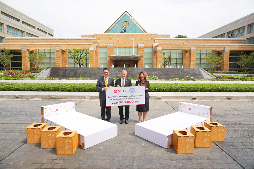 นายรุ่งโรจน์ รังสิโยภาส กรรมการผู้จัดการใหญ่ เอสซีจี กล่าวว่า “เอสซีจี ขอแสดงความเสียใจต่อความสูญเสียจากสถานการณ์แผ่นดินไหวในตุรกี จึงได้ประสานผ่านกระทรวงต่างประเทศ เร่งส่งนวัตกรรมเตียงสนามกระดาษ 200 หลัง และสุขากระดาษเอสซีจีพี 1,000 ชิ้น มูลค่ารวม 500,000 บาท ไปยังสาธารณรัฐตุรกีโดยเร็วที่สุด”