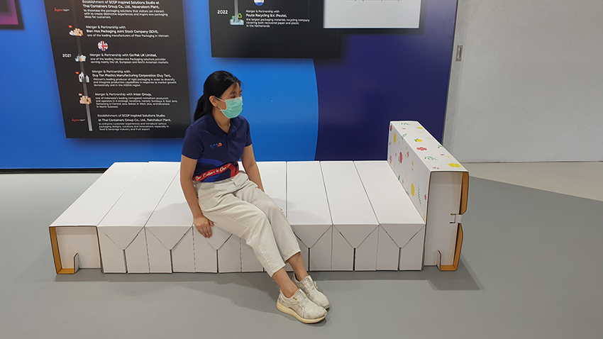 นวัตกรรมเพื่อสังคม เตียงสนามกระดาษเอสซีจีพี (SCGP Paper Bed) ผลิตจากกระดาษรีไซเคิล 100% ออกแบบตามหลักการยศาสตร์ เพื่อรองรับการใช้งานของสรีระ น้ำหนักเบา ประหยัดพื้นที่ขนส่งและการจัดเก็บ ประกอบง่ายใน 8 นาที โดยไม่ต้องใช้กาว และรับน้ำหนักได้ถึง 100 กิโลกรัมในแนวราบ สุขากระดาษเอสซีจีพี (SCGP Paper Toilet) ผลิตจากกระดาษลูกฟูก ประกอบง่าย ประหยัดพื้นที่ ถูกสุขอนามัยรับน้ำหนักได้ถึง 100 กิโลกรัม จัดเก็บและขนส่งได้สะดวกในพื้นที่ห่างไกลเพื่อส่งความช่วยเหลือได้ทันท่วงที