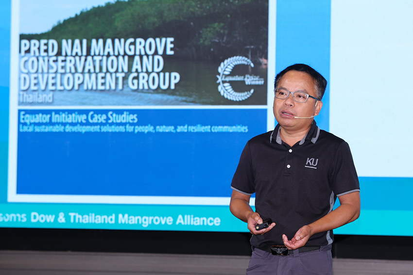 นายขยาย ทองหนูนุ้ย ผู้อำนวยการส่วนอนุรักษ์ทรัพยากรป่าชายเลน สำนักงานทรัพยากรทางทะเลและชายฝั่งที่ 6 ได้ถ่ายทอดประสบการณ์การปลูกป่าชายเลนที่จังหวัดระนองใน 2 โครงการสำคัญ คือ โครงการปลูกป่าชายเลนเชื่อมมิตรภาพไทย-ญี่ปุ่น เพิ่มศักยภาพชุมชนอนุรักษ์ป่าชายเลน และโครงการพัฒนาชุมชนชายฝั่งจังหวัดระนองให้เข้มแข็งรับมือการเปลี่ยนแปลงสภาพภูมิอากาศ โดยระบุว่า ปัจจุบัน จังหวัดระนองมีพื้นที่ป่าชายเลนสมบูรณ์ 171,737 ไร่ และกำลังเสนอให้ป่าชายเลนระนองเป็นมรดกโลกทางธรรมชาติ สำหรับโครงการแรก ศูนย์อนุรักษ์ทรัพยากรป่าชายเลนที่ 6 ร่วมกับ OISCA (Thailand) และองค์กรภาคเอกชนและอาสาสมัครปลูกป่าชาวญี่ปุ่นได้จัดทำโครงการปลูกป่าชายเลน ด้วยการคัดเลือกพื้นที่เข้าโครงการ ซึ่งเป็นที่ป่าชายเลนเสื่อมโทรมหลังสิ้นสุดสัมปทาน เหมืองแร่เก่า บ่อกุ้งเก่า และพื้นที่พิเศษหรือพื้นที่เสื่อมโทรมขั้นวิกฤต มีอาสาสมัครมาทำงานร่วมกับชุมชนเพื่อปลูกป่าเชิงคุณภาพ สามารถฟื้นฟูป่าชายเลนกว่า 9,000 ไร่ โครงการนี้มีแคมเปญปลูกป่าชายเลนที่น่าสนใจคือ แคมเปญ “Homerun Mangrove หนึ่งโฮมรันปลูกพันต้นโกงกาง” โดยนับยอดโฮมรันที่นาย Nobuhiko Mutsunaka นักเบสบอลชื่อดังทำได้ใน 1 ปี ซึ่งตอนนั้นมีการปลูกป่าโกงกางกว่า 4,000 ต้น