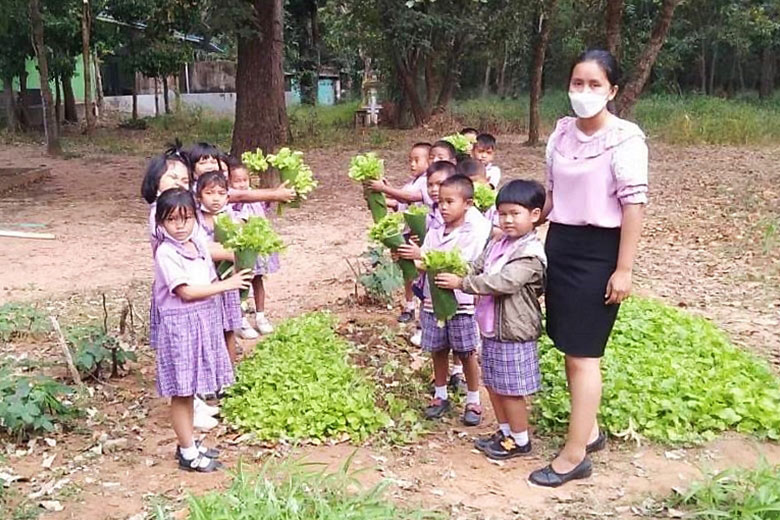 “การที่นักเรียนได้ทำกิจกรรมปลูกผัก ทำให้เขามีทักษะอาชีพ ทั้งการเพาะเห็ดนางฟ้า การปลูกพืชผักสวนครัว คะน้า มะเขือ พริก กะหล่ำ รวมถึงผักสมุนไพร ข่า ตะไคร้ ใบมะกรูด กะเพรา โหระพา ที่จำเป็นต้องใช้ในการปรุงอาหาร จึงไม่ต้องซื้ออีก นอกจากนี้ยังมีกิจกรรมปลูกดอกดาวเรืองมัดเป็นกำขายในช่วงวันพระวันโกนจำหน่ายที่หน้าโรงเรียน มีกิจกรรมร้อยมาลัย โดยเด็กๆจะได้เรียนรู้ตั้งแต่การดูแลการปลูก แบ่งกล้า รดน้ำ พรวนดิน เก็บดอกดาวเรือง มัดกำและร้อยมาลัย สิ่งเหล่านี้คือพื้นฐานอาชีพที่สามารถต่อยอดได้ในอนาคต” ผอ.อลิสา กล่าว