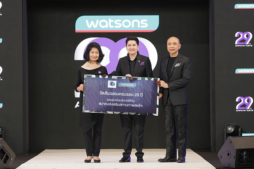 ตลอดเส้นทางของการเติบโต วัตสันยืนหยัดเคียงข้างสังคมไทย ต่อยอดการสร้างสรรค์สิ่งดีๆ คืนสู่สังคม ผ่านการสนับสนุนสมาคมส่งเสริมสถานภาพสตรีฯ (บ้านพักฉุกเฉิน) ที่ดำเนินการต่อเนื่องมานานกว่า 19 ปี ซึ่งไฮไลท์ในงานครบรอบ 29 ปีในครั้งนี้ วัตสันสานต่อพันธกิจเพื่อสังคม โดยจัดการประมูลและจำหน่ายตุ๊กตางูลิมิเต็ดเอดิชันการกุศล เพื่อระดมทุนเข้าสมาคมฯ โดยรายได้ทั้งหมดจากการประมูลตุ๊กตา จากแบรนด์ยูเซอริน (Eucerin) ซึ่งเป็นผู้ชนะการประมูล จะถูกนำไปสมทบทุนร่วมกับรายได้จากการจำหน่ายตุ๊กตาและเงินสนับสนุนจากวัตสัน ประเทศไทย รวมกว่า 500,000 บาท มอบให้กับสมาคมส่งเสริมสถานภาพสตรีฯ บ้านพักฉุกเฉิน เพื่อใช้ในการพัฒนาคุณภาพชีวิตของเด็กและสตรีที่อยู่ภายใต้การดูแลของสมาคมฯ ต่อไป