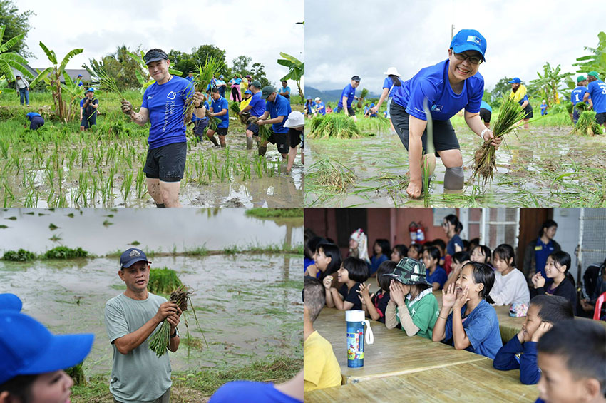 บมจ.กรุงไทย-แอกซ่า ประกันชีวิต นำโดย คุณณัฐพิสิษฐ์ ครุฑครองชัย ประธานเจ้าหน้าที่บริหาร (คนที่ 8 จากซ้าย แถวที่สาม) และ คุณบุปผาวดี โอวรารินท์ ประธานเจ้าหน้าที่บริหาร ฝ่ายการตลาด (คนที่ 9 จากซ้าย แถวที่สาม) นำทีมคณะผู้บริหาร พนักงาน และฝ่ายขายจิตอาสา ร่วมเดินหน้าสร้างความยั่งยืนให้กับชุมชน ผ่านกิจกรรมปลูกข้าว พร้อมทั้งมอบอุปกรณ์ไฟแสงสว่างระบบโซลาร์เซลล์และพันธุ์ปลานานาชนิด ภายใต้โครงการ “แผ่นดินทองเพื่อน้องๆ บ้านนานา ปีที่ 18” ณ. มูลนิธิพันธกิจเด็กและชุมชน บ้านนานา อ. แม่สาย จ. เชียงราย ซึ่งเป็นโครงการที่บริษัทฯ จัดทำอย่างต่อเนื่อง และช่วยสร้างรายได้ที่ยั่งยืน โดยสามารถช่วยสร้างผลผลิตข้าวให้แก่ชุมชนเพิ่มขึ้น จาก 2,000 ก.ก. ต่อปี เป็นมากกว่า 7,000 ก.ก. ต่อปี