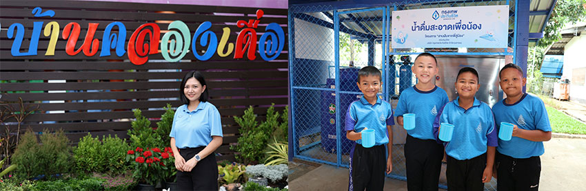 ดร.ทอภัค ด่านกระโทก ผู้อำนวยการโรงเรียนบ้านคลองเดื่อ กล่าวว่า ขอขอบคุณกรุงเทพประกันชีวิตที่ได้มอบสิ่งต่างๆ ให้กับโรงเรียนในวันนี้ ทั้งน้ำดื่มสะอาด พื้นที่การเรียนรู้ สนามเด็กเล่นรวมถึงการปรับปรุงภูมิทัศน์และอุปกรณ์การเรียนการรับประทานอาหาร ทุนการศึกษา และยังเลี้ยงอาหารกลางวันให้เด็กๆ เราเป็นโรงเรียนขนาดเล็กที่ผ่านมาเราขับเคลื่อนด้วยการสนับสนุนจากชุมชน ซึ่งในวันนี้กรุงเทพประกันชีวิตได้เข้ามาสนับสนุนและช่วยเหลือ ซึ่งทำให้คุณครูของเราสามารถนำไปใช้ในการจัดการการเรียนรู้และพัฒนาให้กับนักเรียนในท้ายที่สุด