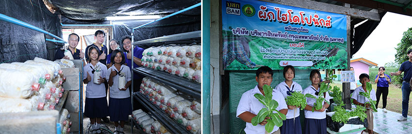BAM ได้จัดทำโครงการโรงเรียนต้นคิด ชีวิตยั่งยืน ต่อเนื่องเป็นปีที่ 4 เพื่อให้นักเรียนได้จัดทำแปลงเกษตร สำหรับเป็นอาหารกลางวัน รวมไปถึงการเลี้ยงไก่ไข่ ปลูกผัก บนแปลงเกษตร รวมทั้งเก็บเห็ดนางฟ้านำไปประกอบอาหารตามหลักโภชนการ เพื่อเสริมสร้างสุขภาพที่ดีสมวัย เพิ่มความรู้และความเข้าใจการทำการเกษตรอย่างถูกต้อง อีกทั้งยังเป็นการเสริมสร้างความรู้ด้านเกษตรตามแผนการเรียนการสอนของโรงเรียนอีกด้วย