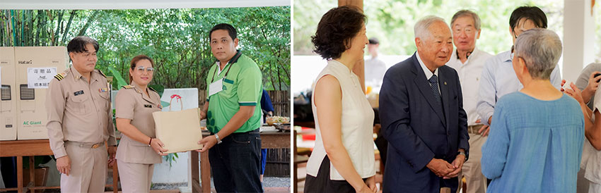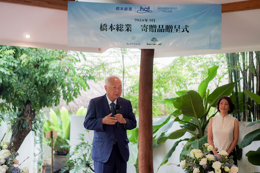 ในงานนายฮิซาจิโระ ฮาชิโมโตะ ประธานบริษัท บริษัท ฮาชิโมโตะ โซเกียวโฮศติ้งส์ จำกัด ซึ่งเป็นองค์กรเอกชนจากประเทศญี่ปุ่น ที่ดำเนินธุรกิจด้านก่อสร้างบ้าน คอนโดมิเนียม และอุปกรณ์ภายในบ้านที่ครบวงจร มีสาขาคลอบคลุมแพร่หลายในประเทศญี่ปุ่น และยังขยายการดำเนินกิจการมายังประเทศไทย ได้ร่วมบริจาคสิ่งของและเงินทุนให้กับมูลนิธิบ้านร่มไทร เพื่อสนับสนุนการดำเนินกิจกรรมเพื่อสังคมในวาระโอกาสนี้