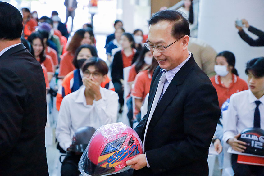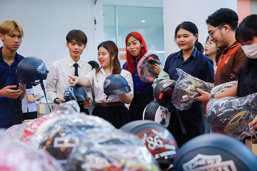 จากนั้นผู้บริหารมหาวิทยาลัยขอนแก่น และผู้บริหารจังหวัดขอนแก่น ได้ร่วมมอบหมวกนิรภัยให้แก่ตัวแทนนักศึกษามหาวิทยาลัยขอนแก่น โดยตัวแทนนักศึกษาคณะบริหารธุรกิจและการบัญชี ชั้นปีที่ 3 ระบุว่า ในมหาวิทยาลัยขอนแก่นนักศึกษาใช้รถมอเตอร์ไซค์เยอะ โดยเฉพาะช่วงนี้ที่ฝนตก หากมีอุปกรณ์ที่มาช่วยป้องกันอุบัติเหตุให้เราได้แบบนี้ก็เป็นเรื่องที่ดีมาก ซึ่งนอกจากแจกหมวกกันน็อกแล้ว มหาวิทยาลัยยังได้จัดกิจกรรมให้ความรู้เกี่ยวกับกฎหมายจราจรและอบรมเกี่ยวกับใบขับขี่มาอย่างต่อเนื่อง ขอบคุณทางมหาวิทยาลัยที่ให้ความสำคัญกับความปลอดภัยของนักศึกษาจริง ๆ