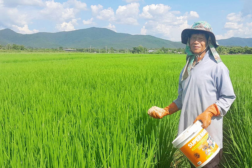 “โครงการนี้ดีมาก ช่วยลดค่าปุ๋ย ช่วยประหยัดต้นทุน คาดว่าผลผลิตข้าวน่าจะเพิ่มมากขึ้นแน่นอน เพราะข้าวกอใหญ่ ตอนนี้เตรียมปุ๋ยเปลือกไข่สำหรับใส่นาปรังไว้แล้ว ขอบคุณที่บริษัทช่วยเหลือสนับสนุนเกษตรกรมาตลอด” นายสิงห์คำ กล่าว