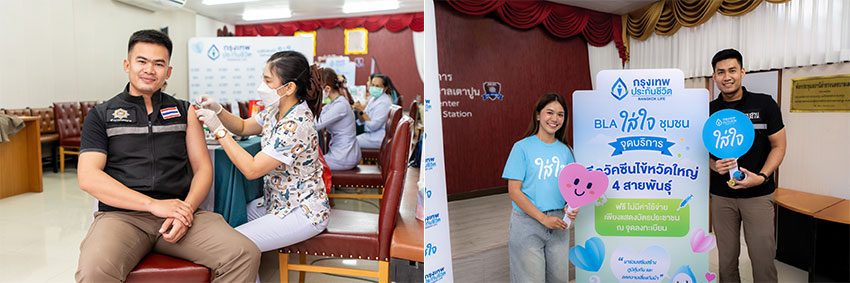 บริษัท กรุงเทพประกันชีวิต จำกัด (มหาชน) โดย นางสาว ศริฐณี ศิริสมบูรณ์ ผู้จัดการอาวุโส ส่วนงานประชาสัมพันธ์และกิจกรรมเพื่อสังคม เดินหน้าสานต่อโครงการ “BLA ใส่ใจชุมชน” จัดฉีดวัคซีนป้องกันโรคไข้หวัดใหญ่ 4 สายพันธุ์ (Vaxigrip Tetra) ให้แก่เจ้าหน้าที่ตำรวจ สน. เตาปูน บางโพ และบางซื่อ รวมถึงประชาชนในพื้นที่ใกล้เคียง เพื่อเสริมสร้างภูมิคุ้มกันและลดความเสี่ยงของการแพร่ระบาดของโรคดังกล่าว