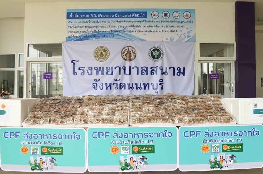 CPF ร่วมกับ บจ.ซีพีอินเตอร์เทรด ในเครือซีพี นำผลิตภัณฑ์อาหารพร้อมทาน 2,800 แพ็ค พร้อมทั้งเครื่องดื่มเพื่อสุขภาพและขนม ส่งมอบให้แก่ รพ.สนามธรรมศาสตร์