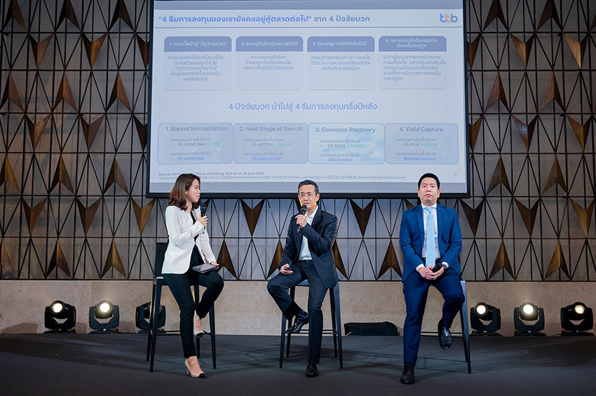 ทีเอ็มบีธนชาต หรือ ทีทีบี ยกกองทัพผู้เชี่ยวชาญด้านการลงทุน ร่วมเปิดทิศทางการลงทุนตลาดในครึ่งปีหลังของปี 2567 แบบเอ็กซ์คลูซีฟ ผ่านสัมมนา “ttb investment outlook 2024: วิเคราะห์โอกาสเจาะ 4 ธีมการลงทุนครึ่งปีหลังเพื่อความยั่งยืน” ให้กับลูกค้า ttb reserve เพื่อนำมาปรับพอร์ตการลงทุนและช่วยสร้างโอกาสในการได้รับผลตอบแทนที่ดี นำไปสู่ชีวิตทางการเงินที่ดีขึ้นทั้งในวันนี้และอนาคต