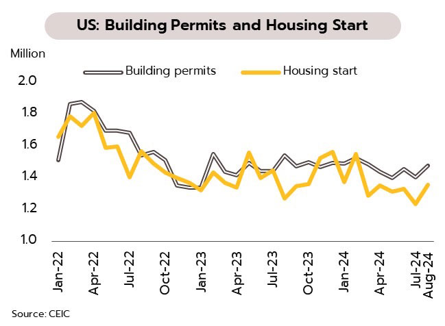 FED ลดดอกเบี้ย 0.50% เตรียมรับมือเศรษฐกิจชะลอตัว คาดดอกเบี้ยเข้าสู่ขาลงอย่างค่อยเป็นค่อยไป จากการประชุมในวันที่ 17-18 กันยายน ธนาคารกลางสหรัฐฯ (FOMC) มีมติปรับลดอัตราดอกเบี้ยเป็นครั้งแรกในรอบ 4 ปีสู่ระดับ 4.75% - 5.00% โดยเฟดประเมินว่าเศรษฐกิจสหรัฐจะเติบโตเฉลี่ยที่ 2.0% ในช่วงปี 2024 ถึง 2027 ส่วนอัตราการว่างงานคาดว่าจะเพิ่มขึ้นเล็กน้อยสู่ 4.4% ในปี 2567 ก่อนลดลงในปี 2569 และ 2570 ขณะที่อัตราเงินเฟ้อจะลดลงสู่เป้าหมายที่ 2% ภายในปี 2569 สำหรับตัวเลขเศรษฐกิจล่าสุดในเดือนสิงหาคม ยอดค้าปลีกขยายตัว 2.13% YoY แม้ชะลอลงจากเดือนก่อนหน้าที่ 2.86% แต่โตดีกว่าตลาดคาด ขณะที่ยอดขายบ้านใหม่เพิ่มขึ้น 9.6% MoM เช่นเดียวกับใบขออนุญาตก่อสร้างที่เพิ่มขึ้น 4.9% ส่วนผู้ยื่นขอสวัสดิการว่างงานครั้งแรกรายสัปดาห์ ลดลง 12,000 ราย สู่ระดับต่ำสุดในรอบ 4 เดือน