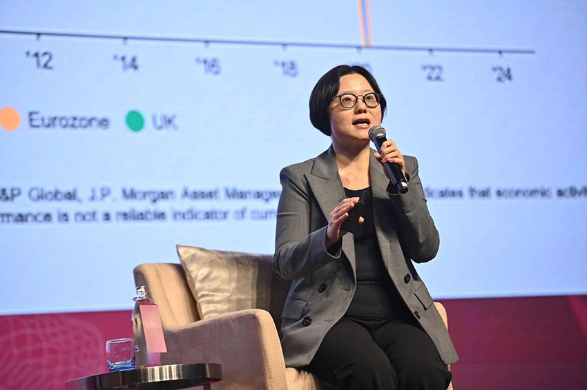 Ms. Jin Yuejue แนะว่า "เน้นกระจายสินทรัพย์ลงทุนทั้งหุ้นและตราสารหนี้ ปรับเพิ่มน้ำหนักหุ้นโลก เช่น หุ้นสหรัฐ ขนาดกลางและเล็ก กับหุ้นญี่ปุ่น และลดน้ำหนักหุ้นยุโรป พร้อมกับเพิ่มน้ำหนักในตราสารหนี้ เน้นที่มีคุณภาพสูง รวมถึงหุ้นกู้เอกชน"