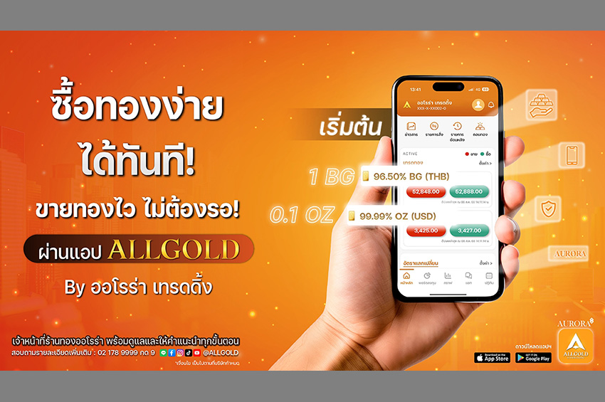 บริษัท ออโรร่า เทรดดิ้ง จำกัด ผู้ประกอบธุรกิจจำหน่ายทองคำออนไลน์ในประเทศไทย เดินหน้าขยายช่องทางการให้บริการสู่โลกดิจิทัล ด้วยการเปิดตัวแอปพลิเคชัน "ALLGOLD" แพลตฟอร์ม ซื้อ-ขาย-ถอน ทองคำ 96.5% และ 99.99% ในรูปแบบออนไลน์แบบครบวงจร ตอบสนองพฤติกรรมผู้บริโภคยุคดิจิทัล ที่ต้องการความสะดวกสบายในการลงทุนทองคำโดยไม่ต้องเดินทางมาหน้าร้าน