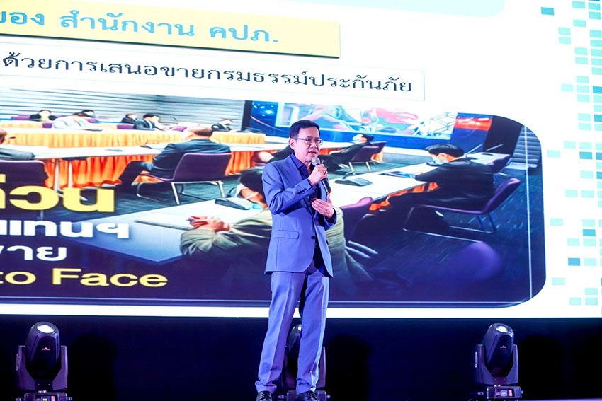 ในโอกาสนี้ เลขาธิการ คปภ. ได้กล่าวปาฐกถาตอนหนึ่งว่า เทคโนโลยี 5G จะมีบทบาทในวิถีชีวิตแบบ New Normal มากขึ้น โดยเฉพาะในธุรกิจประกันภัย ที่เทคโนโลยี 5G จะเข้ามามีส่วนร่วมตั้งแต่ต้นจนถึงการสิ้นสุดกระบวนการที่เกี่ยวข้องกับการประกันภัย โดยเทคโนโลยี 5G ได้ส่งผลให้เกิดการขับเคลื่อนอุตสาหกรรมต่าง ๆ ที่จะต้องมีการปรับตัว ตั้งแต่กระบวนการพัฒนาผลิตภัณฑ์ประกันภัยและออกกรมธรรม์ประกันภัยให้แก่ลูกค้า ซึ่งเทคโนโลยี 5G