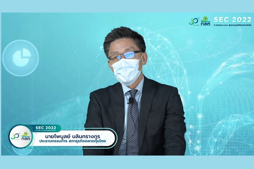 สู่ความเข้มแข็งและเติบโตอย่างยั่งยืน โดยมีช่วงการเสวนา หัวข้อ “แผนยุทธศาสตร์ ก.ล.ต. กับทิศทางเศรษฐกิจและตลาดทุนปี 2565” ซึ่งสะท้อนแนวคิดที่มีต่อแผนยุทธศาสตร์ ก.ล.ต. เพื่อเป็นแนวทางการส่งเสริมพัฒนาศักยภาพของตลาดทุน ให้พร้อมต่อการรับมือกับสถานการณ์ทางเศรษฐกิจในอนาคตผ่านมุมมองของผู้เชี่ยวชาญ โดยได้รับเกียรติจาก นายไพบูลย์ นลินทรางกูร ประธานกรรมการ สภาธุรกิจตลาดทุนไทย ดร.นณริฏ พิศลยบุตร นักวิชาการอาวุโส สถาบันวิจัยเพื่อการพัฒนาประเทศไทย และ นายศุภกฤษฎ์ บุญสาตร์ นายกสมาคมสินทรัพย์ดิจิทัลไทย ร่วมเสวนาในโอกาสนี้