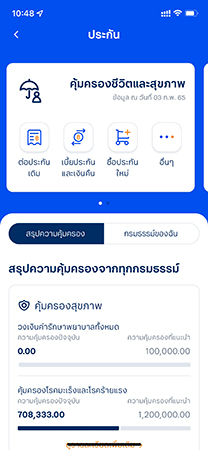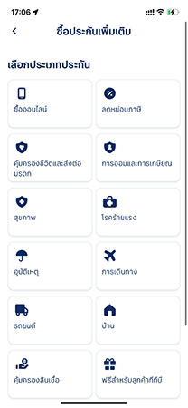ลูกค้าสามารถซื้อประกันใหม่ หรือชำระค่าเบี้ยประกันที่มีอยู่แล้วได้ง่าย ๆ ภายในแอปพลิเคชัน ซึ่งได้รวบรวมประกันทุกประเภทมาให้เลือกสรรจากหลากหลายบริษัทชั้นนำ ทั้งประกันชีวิตและสุขภาพ ประกันอุบัติเหตุ หรือประกันอื่น ๆ ครอบคลุมทั้งบ้าน รถยนต์และเดินทาง