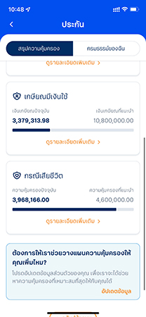พบกับฟีเจอร์ใหม่ ๆ ด้านประกันที่ออกแบบมาเพื่อให้ลูกค้าได้ค้นพบประกันที่พอดีกับตัวเองได้แล้ววันนี้ บนแอป ttb touch เวอร์ชันใหม่ สอบถามรายละเอียดเพิ่มเติมได้ที่ ttb contact center โทร.1428