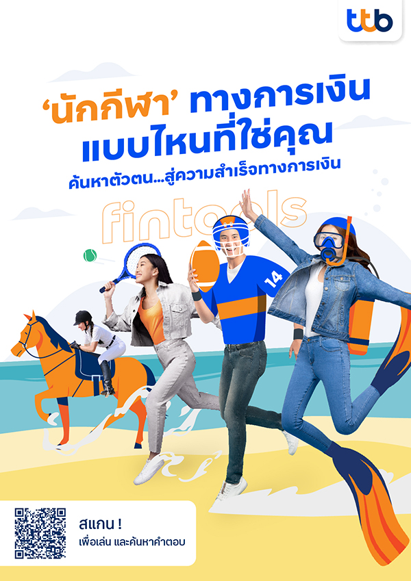 เดินหน้าต่อยอดให้ความรู้ทางการเงินหลากหลายรูปแบบ ครอบคลุมทุกกลุ่มเป้าหมาย เปิดตัว “fintools” เครื่องมือทางการเงินรูปแบบใหม่ที่จะช่วยให้ค้นหาตัวตนทางการเงินที่เป็นคุณ ผ่าน 16 คาแรคเตอร์นักกีฬา ตามไลฟ์สไตล์การใช้จ่าย เก็บออม และความพร้อมในการลงทุนเพื่ออนาคต ชูแนวคิดเปลี่ยนเรื่องการเงินให้เป็นเรื่องง่าย และสนุก มีคุณค่า ใช้งานได้จริง มุ่งสู่จุดเริ่มต้นชีวิตทางการเงินที่ดีขึ้น ด้วยการทำความรู้จัก และเข้าใจพฤติกรรมทางการเงินของตนเอง สามารถเข้าถึง fintools นี้ได้ผ่านเว็บไซต์ ทีทีบี