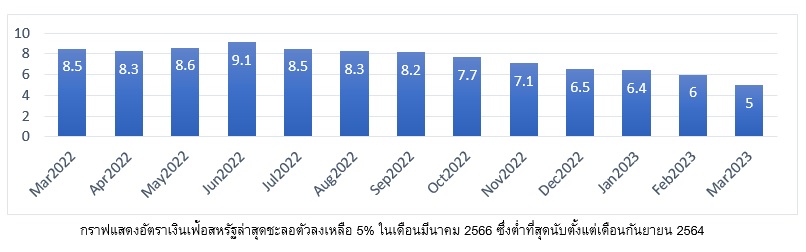 นายพีระพงศ์ กล่าวต่อถึงปัจจัยที่ส่งผลกระทบต่อราคาทองคำในเดือนพฤษภาคมว่า สถานการณ์ด้านฝั่งสหรัฐฯ ประเด็นสองที่ต้องติดตามคือ ตัวเลขการจ้างงานนอกภาคการเกษตรของสหรัฐฯ ในวันที่ 5 พฤษภาคมนี้ว่า เป็นไปตามที่ตลาดคาดการณ์หรือไม่ คนตกงานเพิ่มขึ้นหรือลดลง สะท้อนถึงปัญหาเศรษฐกิจถดถอยหรือไม่ ซึ่งจะเป็นมาตรวัดหนึ่งที่ Fed จะใช้ในการประเมินทิศทางดอกเบี้ยในการประชุมครั้งถัดไป อีกทั้งในเรื่องอัตราเงินเฟ้อของสหรัฐฯ ก็ยังเป็นสิ่งสำคัญที่ต้องติดตามเช่นกัน ซึ่งล่าสุดอัตราเงินเฟ้อยังคงตัวในระดับสูงในเดือนมีนาคมที่ผ่านมา อยู่ที่ระดับ 5% แม้ว่าต่ำที่สุดนับตั้งแต่เดือนกันยายน 2564 แต่ยังห่างจากเป้าของ Fed ที่ระดับ 2% ต้องมาติดตามกันต่อในส่วนของเดือนเมษายนว่า เงินเฟ้อจะมีการเปลี่ยนแปลงไปในทิศทางใด โดยจะประกาศในวันที่ 10 พฤษภาคม 2566