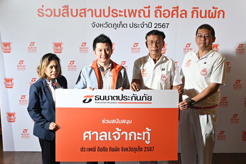 นายทีฆภัค ศรียุกต์วงศ์ รองประธานเจ้าหน้าที่บริหาร บมจ. ธนชาตประกันภัย กล่าวว่า “ประเพณีถือศีลกินผัก จังหวัดภูเก็ต นับเป็นมรดกทางวัฒนธรรมที่มีมาอย่างยาวนาน ซึ่งธนชาตประกันภัย ในฐานะภาคเอกชนที่มีความมุ่งมั่นสร้างความยั่งยืนให้กับชุมชนและสังคม จึงได้ร่วมมือกับ ทีเอ็มบีธนชาต หรือ ทีทีบี สนับสนุนการจัดงานเทศกาลถือศีลกินผัก จังหวัดภูเก็ต ต่อเนื่องเป็นปีที่ 3 โดยปีนี้ได้ให้การสนับสนุนงบประมาณการจัดกิจกรรมของ 5 ศาลเจ้าใหญ่ ได้แก่ ศาลเจ้ากระทู้, ศาลเจ้าจุ้ยตุ่ยเต้าโบ้เก้ง, ศาลเจ้าปุดจ้อ, ศาลเจ้าบางเหนียว และศาลเจ้ากวนอู บ้านนาบอน พร้อมทำหน้าที่ช่วยเผยแพร่ประชาสัมพันธ์เชิญชวนนักท่องเที่ยวสายบุญทั่วประเทศ รวมถึงนักท่องเที่ยวต่างชาติ เดินทางเข้ามาที่จังหวัดภูเก็ตเพื่อร่วมงานประเพณี และผลักดันเศรษฐกิจท้องถิ่นให้คึกคัก ตลอดระยะเวลาของการจัดงาน ระหว่างวันที่ 3 - 11 ตุลาคม 2567
