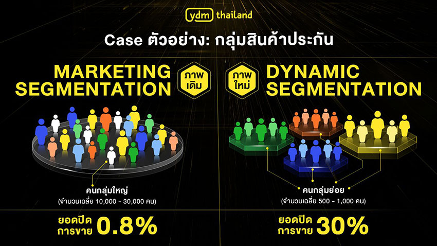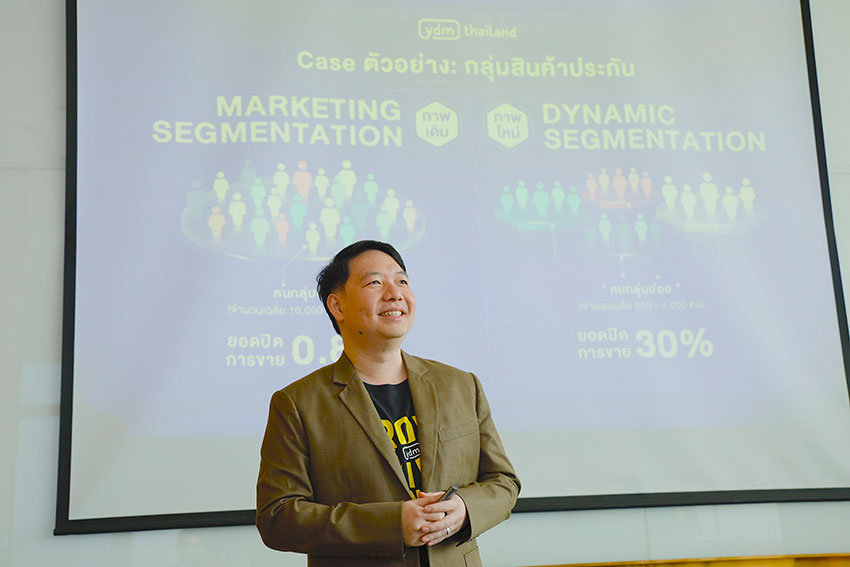 ด้านนายณัฐพล กล่าวว่า “ทาง YDM เองได้มีการนำ Automated Personalized Contextual Marketing มาใช้กับลูกค้าของเรา ยกตัวอย่าง ประกันภัยแบรนด์หนึ่งที่ขายทางออนไลน์ เราใช้ CDP มาเก็บข้อมูลเชิงพฤติกรรมของลูกค้าแต่ละรายอย่างละเอียด เช่น สนใจ Product ตัวไหน Engage กับ Message อะไร มาทำการแบ่งเป็น Segment ย่อย ๆ ตามบริบทของลูกค้าเพื่อทำการสื่อสารแบบอัตโนมัติ right time & right message ผลที่ได้คือ Conversion Rate ในการปิดการขายออนไลน์จากไม่ถึง 1% ขึ้นไปเกือบ 30% นั่นหมายถึงประสิทธิภาพที่มากขึ้นกว่า 30 เท่า ทั้งนี้การทำ Personalization ระดับนี้ไม่ได้มีแต่ข้อดีเสมอไป เพราะขนาดของกลุ่มเป้าหมายที่เจาะจงจะมีขนาดที่เล็กลงมาก ๆ จากหลักหมื่น หลักแสน เหลือเพียงแค่ประมาณ 4-5 ร้อยคน รวมถึงยังต้องรอ Signal จาก User ในการสื่อสารอย่างมีประสิทธิภาพ หากแบรนด์ไม่ได้มีระบบที่พร้อมจัดเก็บข้อมูลอย่างเป็นระบบ มี AI ช่วยให้การ Scale up ปริมาณชิ้นงาน สิ่งเหล่านี้แทบจะเกิดขึ้นไม่ได้เลย”
