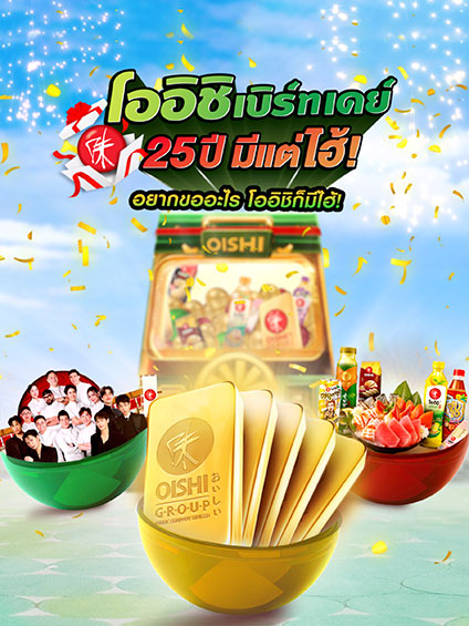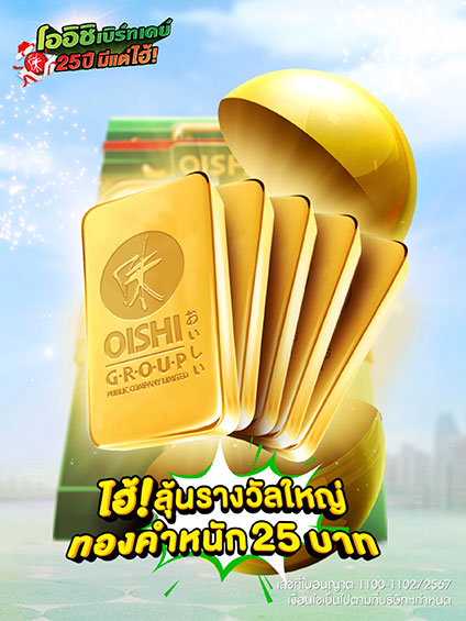 โออิชิ แจกหนัก จัดใหญ่ ในโอกาสฉลองครบรอบ 25 ปี กับแคมเปญพิเศษขอบคุณลูกค้า “โออิชิ เบิร์ทเดย์ 25 ปี มีแต่ไฮ้!“ ทั้งลด แลก ลุ้นของรางวัลมากมายที่โออิชิเตรียมไว้ “ไฮ้” สำหรับลูกค้าคนพิเศษ รางวัลใหญ่ทองคำแท่งหนัก 25 บาท และของรางวัลอีกมากมาย เพียงสะสมพ้อยท์แลกรับ-แลกลุ้น รวมทั้งดีลส่วนลดสุดคุ้มจากร้านอาหารในเครือโออิชิและเครื่องดื่มชาเขียวโออิชิ