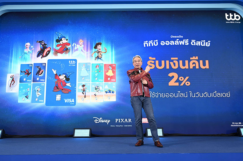 นายฐากร ปิยะพันธ์ ผู้จัดการใหญ่ ทีเอ็มบีธนชาต เปิดเผยว่า ทีทีบีถือเป็นแบงก์เดียวในไทย และเป็นแบงก์แรกที่ได้เปิดตัวบัตรเดบิตและบัตรเครดิต ทีทีบี ดิสนีย์ ความร่วมมือนี้ถือเป็นครั้งสำคัญที่ทีทีบีได้ส่งมอบแคมเปญ “ชีวิตทุกวันอัศจรรย์ได้จริง” เพื่อให้ลูกค้าเข้าถึงประสบการณ์ความสนุก ความคุ้มค่าในทุก ๆ วัน อาทิ สิทธิประโยชน์จากการรับเงินคืนสูงสุด 2% ทุกการใช้จ่ายออนไลน์ผ่านบัตรเดบิต และมีสิทธิ์ใช้ e-Slip หลากหลายธีมดังจากดิสนีย์ สำหรับบัตรเครดิตรับคะแนนสะสมสูงสุด 5 เท่า และเลือกทำรายการแบ่งจ่าย 0% นานถึง 6 เดือน กับร้านค้าดิสนีย์ที่ร่วมรายการทั้งการใช้จ่ายหน้าร้านค้าและการทำรายการผ่านออนไลน์ รวมถึงการจองกิจกรรมดิสนีย์ผ่าน Klook โดยทำรายการแบ่งจ่ายได้เองผ่านบริการ ttb so goood บนแอป ทีทีบี ทัช นอกจากนี้ ทีทีบียังได้จับมือกับ 11 พันธมิตรชั้นนำระดับประเทศ ส่งมอบโปรโมชันเอ็กซ์คลูซีฟให้ลูกค้าผู้ถือบัตร ครอบคลุมทุกการใช้จ่าย ทุกหมวด ทุกไลฟ์สไตล์ ทั้งความบันเทิง กิน-เที่ยว-ช้อป และเร็ว ๆ นี้เตรียมพบกับเอ็กซ์คูลซีฟดีลจากฮ่องกง ดิสนีย์แลนด์ โดยคาดว่าจะมีลูกค้าเปิดบัตรเดบิต จำนวน 725,000 ใบ และบัตรเครดิต จำนวน 300,000 ใบ ในปี 2568 นี้