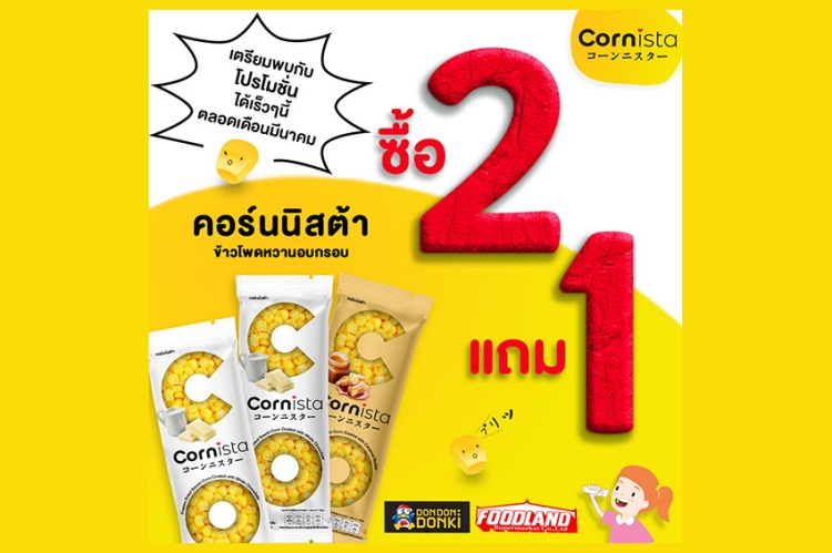 มาพร้อมโปรโมชั่นสุดคุ้ม ตลอดเดือนมีนาคมนี้ จากราคาปกติซองละ 20 บาท โปรโมชั่น ซื้อ 2 แถม 1 ทั้ง 2 รสชาติ รสไวท์ช็อกโกแลต และคาราเมลบัตเตอร์ แค่ฉีกซองอร่อยได้ทันที ทุกที่ ทุกเวลา รีบพุ่งตัวไปจัด Cornista ทั้ง 2 รสชาติ มาลองกันได้แล้วที่ Donki ตั้งแต่วันที่ 1-31 มีนาคม 2568 และ Foodland ตั้งแต่วันที่ 7-19 มีนาคม 2568 ทุกสาขา