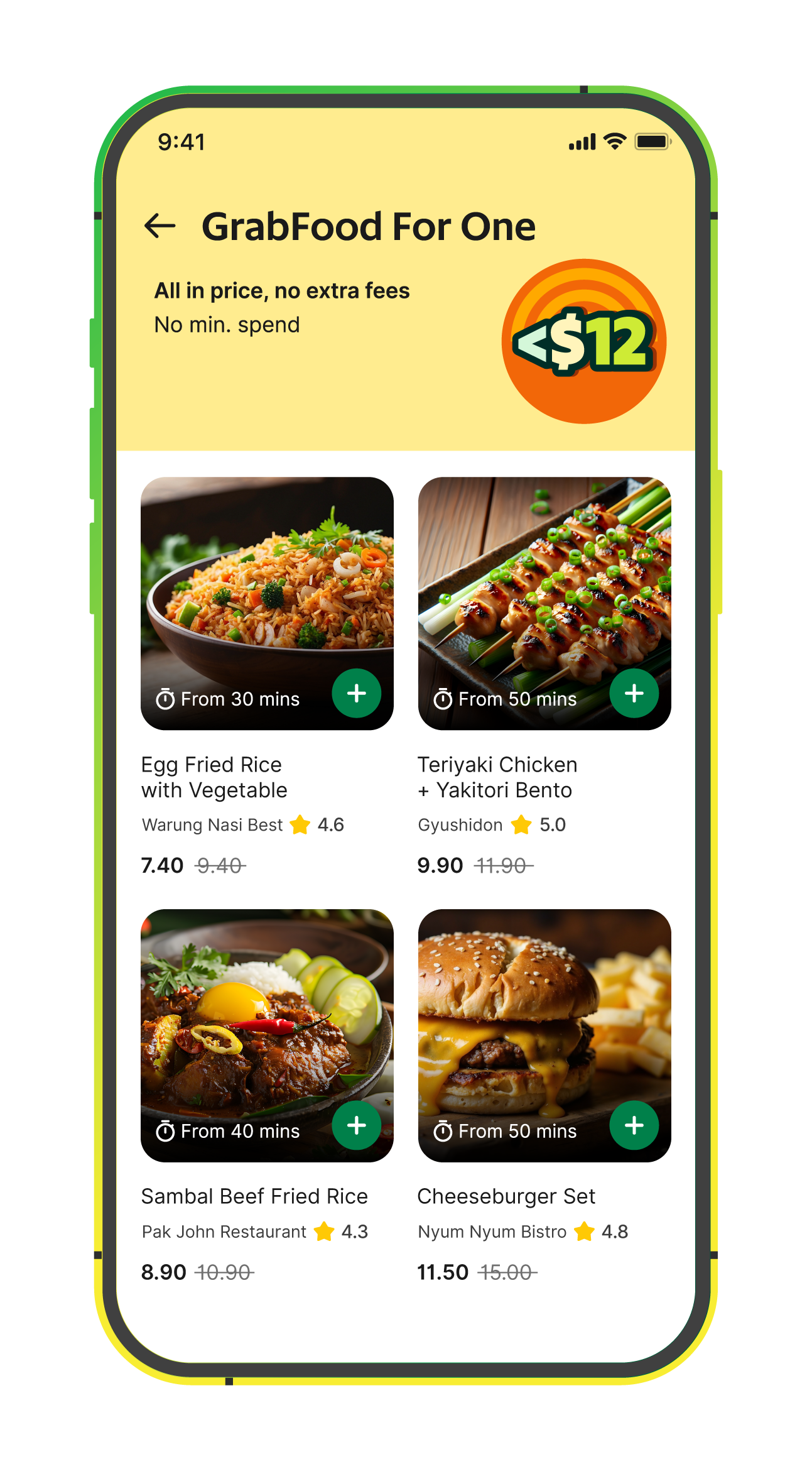 · GrabFood for One: ฟีเจอร์ใหม่ที่ช่วยให้การสั่งอาหารเพื่อรับประทานคนเดียวง่ายขึ้น ด้วยเมนูจานเดี่ยวในราคาสบายกระเป๋า ไม่มีขั้นต่ำในการสั่งซื้อ และมีอัตราคาส่งราคาประหยัด โดยแกร็บร่วมกับพาร์ทเนอร์