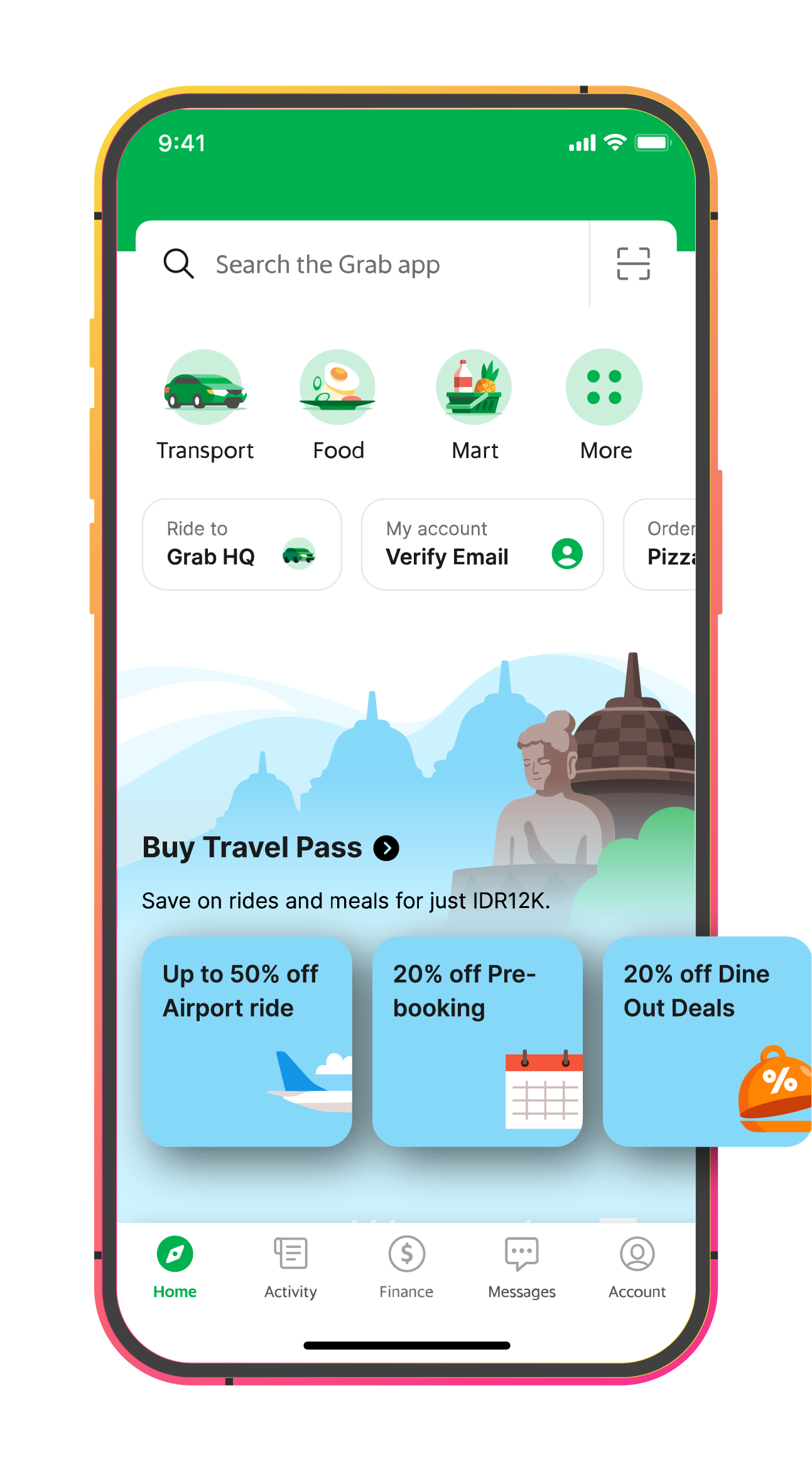 · Grab Travel Pass: แพ็กเกจส่วนลดการเดินทางที่ออกแบบมาเพื่อคนที่ชอบเดินทางไปต่างประเทศ (เฉพาะในภูมิภาคเอเชียตะวันออกเฉียงใต้) บ่อยครั้ง โดยสามารถซื้อแพ็กเกจท่องเที่ยวผ่านแอปก่อนออกเดินทาง ซึ่งมอบส่วนลดทั้งค่ารถจากสนามบิน ค่ารถทั่วไป บริการส่งอาหาร และร้านอาหาร พร้อมให้บริการแล้วในทุกประเทศ