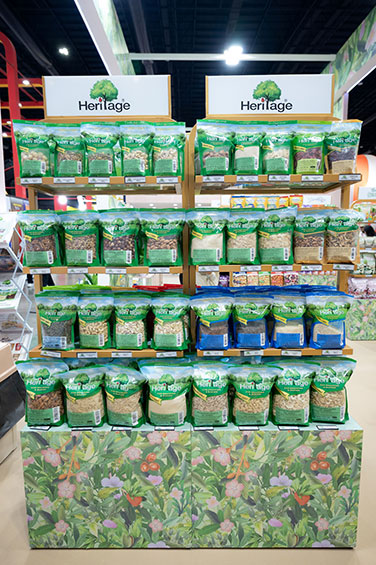 ในปีนี้ เครือเฮอริเทจมาพร้อมคอนเซ็ปต์ "เปิดประตูสู่โลกแห่งสุขภาพ" นำเสนอผลิตภัณฑ์คุณภาพเยี่ยมหลากหลายกลุ่ม ไม่ว่าจะเป็น “เฮอริเทจ” ผลิตภัณฑ์ถั่ว ธัญพืช และผลไม้อบแห้งพรีเมียม สำหรับเป็นวัตถุดิบประกอบอาหาร, ”บลูไดมอนด์” ผลิตภัณฑ์ถั่วอัลมอนด์จากแคลิฟอร์เนีย และเครื่องดื่มน้ำนมอัลมอนด์ "อัลมอนด์ บรีซ", “ซันคิสท์” ผลิตภัณฑ์ถั่วพิสทาชิโอ ถั่วพรีเมียมคุณภาพหลากหลายชนิด และเครื่องดื่มน้ำนมพิสทาชิโอ, “นัท วอล์คเกอร์” ขนมขบเคี้ยวประเภทถั่วและเมล็ดพืช, “เนเจอร์ เซ็นเซชั่น” ผลิตภัณฑ์ธัญพืชและผลไม้อบแห้ง, “วันเดอร์พัฟฟ์” ข้าวโพดอบกรอบผสมถั่วพรีเมียม, “ฟรังซัว” คุ้กกี้สไตล์โฮมเมด, “เลอรูท” อาหารคลีนพร้อมทาน, “ลาชายา” ผลิตภัณฑ์ชาดอกไม้และผลไม้ออร์แกนิค