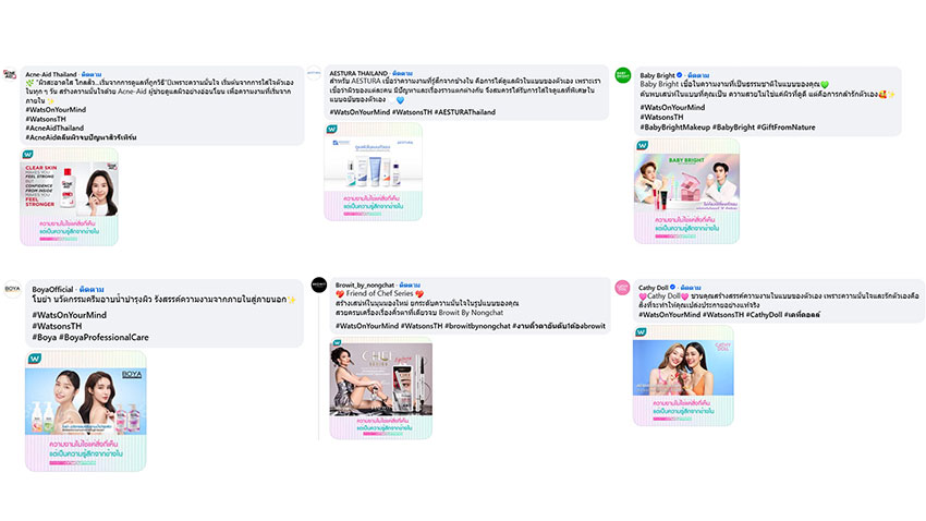 วัตสันและ 22 แบรนด์พันธมิตรชั้นนำในกลุ่มสุขภาพ ผิวหนัง และเครื่องสำอาง อาทิ Cerave, Dazzle Me, IN2IT, ILLIYOON, La Roche Posay, Revlon, Srichand, Vaseline, Vichy, YOU และอื่นๆ เห็นคุณค่าในสิ่งเดียวกันว่าความสวยที่ไม่ใช่แค่สิ่งที่มองเห็น แต่คือความแข็งแรงของร่างกาย ความสบายใจที่มาจากข้างใน และความใส่ใจต่อโลกที่เราอยู่ด้วยกัน เพราะเรารู้ดีว่า ความงามที่แท้จริง… ยั่งยืน และมีค่ากว่า เมื่อมันเกิดขึ้นจากการรักและดูแลตัวเองอย่างแท้จริง
