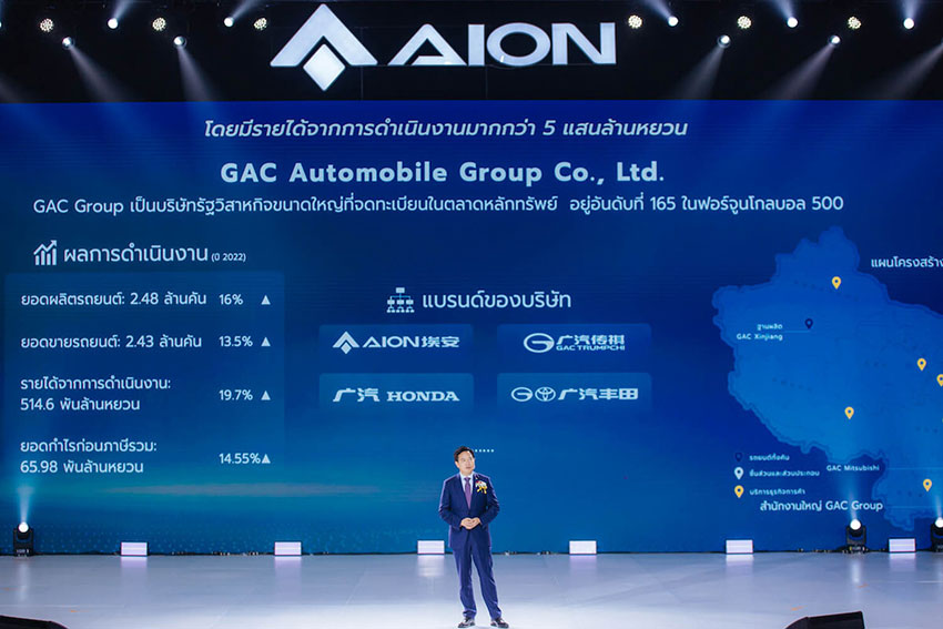 ประเดิมตลาดด้วย GAC AION Y Plus รถยนต์ไฟฟ้าแบบ SUV ที่สร้างปรากฏการณ์ด้วยแนวคิด "Fancy Electric SUV" ชูจุดเด่นด้านพื้นที่ภายในห้องโดยสารที่กว้างขวางที่สุดในคลาส สามารถปรับเปลี่ยนเบาะโดยสารให้กลายเป็นเตียงนอนขนาดใหญ่ได้ พร้อมด้วยเทคโนโลยีแบตเตอรี่ Magazine Battery ที่ปลอดภัย และระยะทางวิ่งที่ไกลถึง 490 กิโลเมตร (มาตรฐาน NEDC) ความสำเร็จของ GAC AION Y Plus สะท้อนได้จากยอดจองถล่มทลายกว่า 4,500 คันภายในงาน Motor Expo 2023 ซึ่งถือเป็นการเปิดตัวที่สวยงามและเป็นการประกาศการมาถึงของแบรนด์ GAC ในตลาดประเทศไทยอย่างยิ่งใหญ่