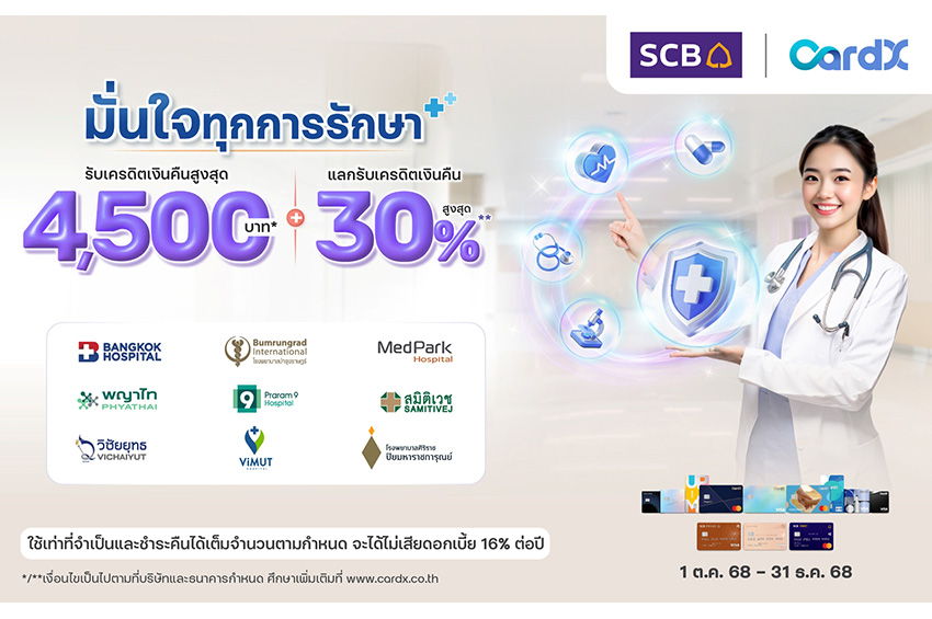 เพื่อตอบโจทย์เทรนด์สุขภาพที่มาแรงและไลฟ์สไตล์ของผู้บริโภคยุคใหม่ CardX จึงเปิดตัวแคมเปญใหญ่ “มั่นใจทุกการรักษา” มอบสิทธิพิเศษสุดคุ้มให้ลูกค้าบัตรเครดิต CardX ได้ดูแลสุขภาพได้อย่างมั่นใจ พร้อมรับเครดิตเงินคืนคุ้ม 2 ต่อ*/** เมื่อมียอดใช้จ่ายแบบชำระเต็มจำนวน ณ โรงพยาบาลชั้นนำที่ร่วมรายการ ได้แก่ โรงพยาบาลกรุงเทพ ซอยศูนย์วิจัย, โรงพยาบาลบำรุงราษฎร์, โรงพยาบาลเมดพาร์ค, กลุ่มโรงพยาบาลพญาไท, โรงพยาบาลพระรามเก้า, กลุ่มโรงพยาบาลสมิติเวช, โรงพยาบาลวิชัยยุทธ, โรงพยาบาลวิมุต และโรงพยาบาลศิริราช ปิยมหาราชการุณย์