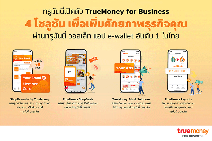 ทั้งนี้ โซลูชัน ของ TrueMoney for Business ประกอบด้วยบริการ 4 รูปแบบเพื่อตอบรับความต้องการของธุรกิจ ได้แก่
