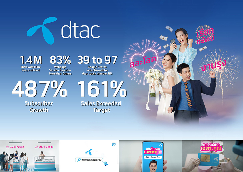 - ใช้สื่อที่เข้าถึงกลุ่มเป้าหมายได้ครบทุกมิติ จากแคมเปญดีแทค เบอร์มงคล ใช้สื่อผสมผสานรอบตัวเจาะให้เข้าถึงคนสายมู จนสามารถครองความเป็นเจ้าตลาดในเรื่องเบอร์มงคล ดีแทคเข้าใจคนไทยอย่างแท้จริง และสื่อสารอยู่ในทุกช่องทางที่ผู้บริโภคมองหา จากการศึกษาพฤติกรรมของคนไทยที่ชื่นชอบเรื่องเลขมงคล เสริมโชคชะตา ในเชิงลึกและต่อเนื่อง ทำให้รู้ว่าสื่อไหนที่คนติดตาม แคมเปญนี้ประสบความสำเร็จอย่างมาก ทำให้มียอดผู้ใช้งานเติบโตมากถึง 487% ยอดขายทะลุเป้า 161%